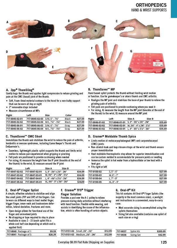 or function. Use for gamekeeper's or skiers thumb and CMC arthritis.