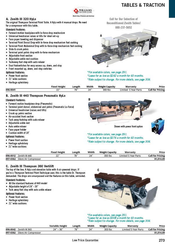 896-0042 Zenith III 360 24˝ – 30˝ 78˝ 24˝ 300 lbs Limited 5 Year Parts Call for Pricing